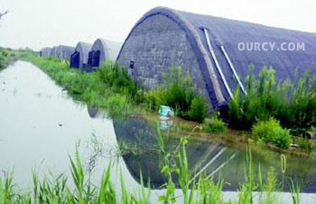 在水沟南侧的一排排高大的鱼棚处,每个鱼棚边都有两口井,鱼棚和井之间都有管道相连。村民们说,此处养鱼户养的都是大鲮鲆鱼,是用井下抽出来的卤水和淡水养殖,养殖过程中还必须使用循环水,这样就产生了大量废水。据了解,2003年,该村500多亩地都被村里承包给了外地人,起初,那些外地人在承包地里种植农作物,后来陆续建起了鱼棚、虾池养殖鱼虾。往年雨水少,养殖户们虽然也排放废水,但一直相安无事。村民表示,随着近期雨水增多,水沟里的水越来越多。7月19日下午1时许,他们突然发现水沟内的水漫过了地头的生产路,溢向了他们的口粮田里。当时水流非常大,他们想了很多办法都无法阻止,只能眼睁睁地看着废水流进农田。“我们没办法,只能把他们排废水的大排水管道先堵起来,否则,我们田里受灾会更加严重。”村民说,由于目前仍有雨,他们只得轮流在地头边值班,防止含有卤水的废水再次溢进农田里。